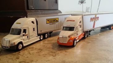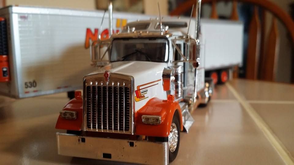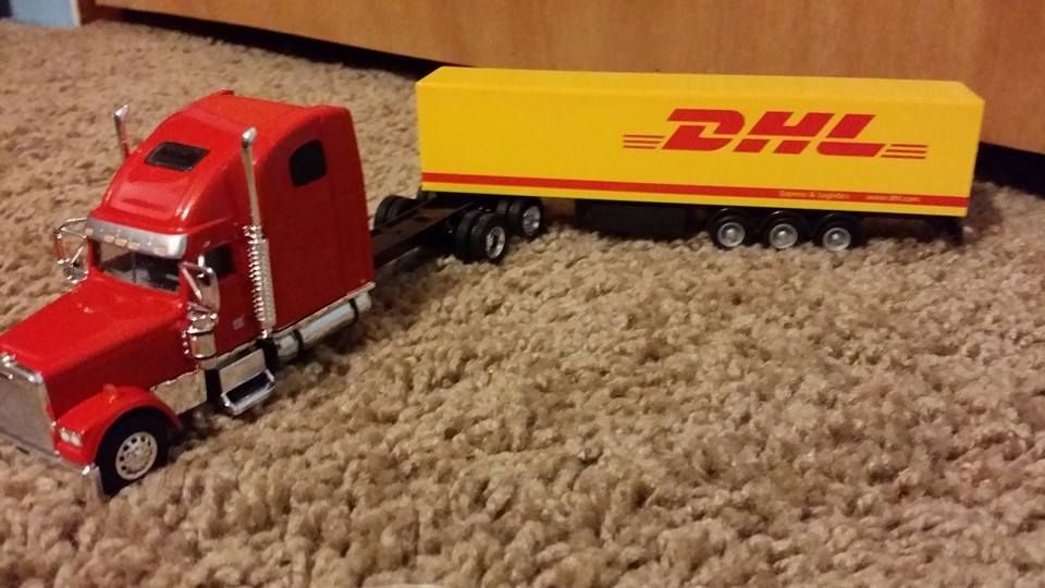 I've been feeling particularly nostalgic as of late, even started a collection of toy trucks I bought from Ebay to recreate parts of my career. Some of these are very special to me, as they represent such cherished memories, especially the Navajo W900 and the Jamestown Classic XL. That one I had to kind of create myself, I ordered the red Classic XL, and a DHL tractor and trailer, then put them together. The Classic has a bit of a stretched out frame, but it's not bad.